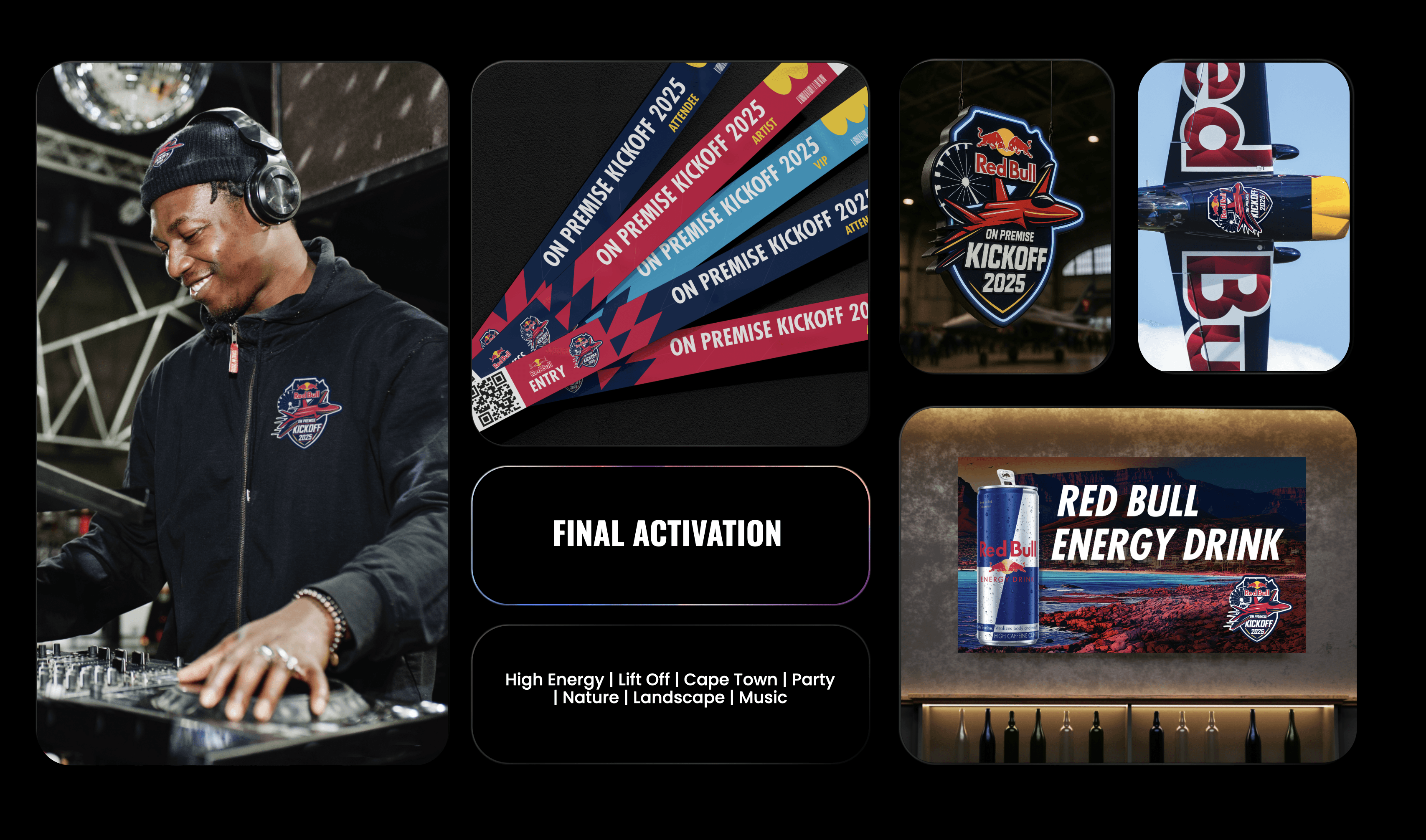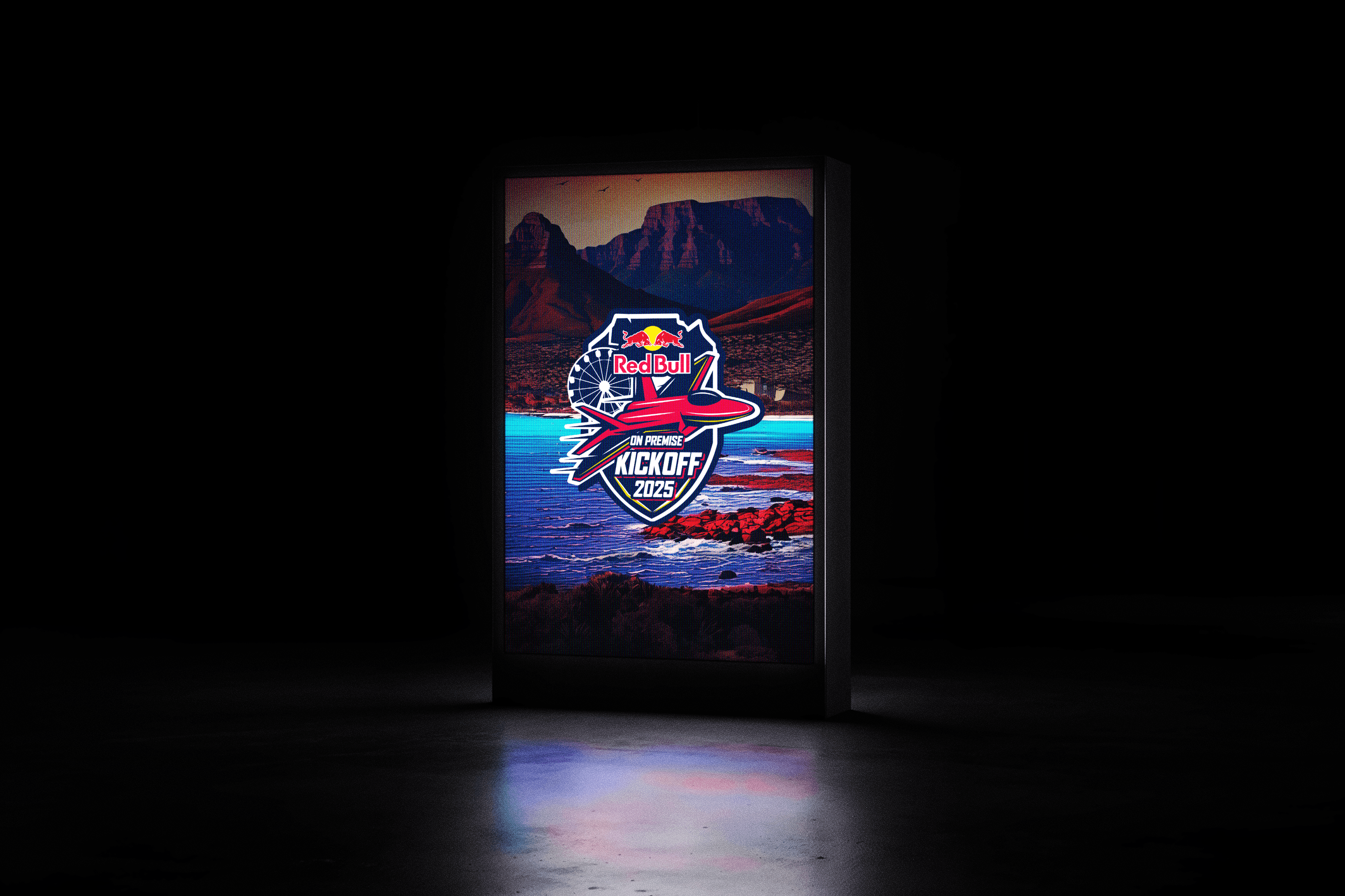 A bold visual identity was created to tie Cape Town’s landscapes with aeronautical themes, symbolizing liftoff. This was promoted internally to engage 300+ key Red Bull On Premise partners ahead of the Kickoff event.